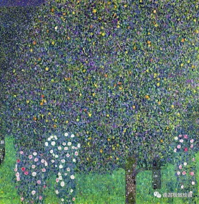 像莫奈、克里姆特等都画过点彩,点在综合性画法中与线条和体面结合,可产生丰富的对比。