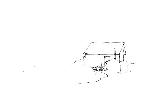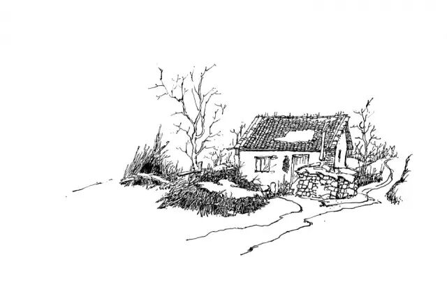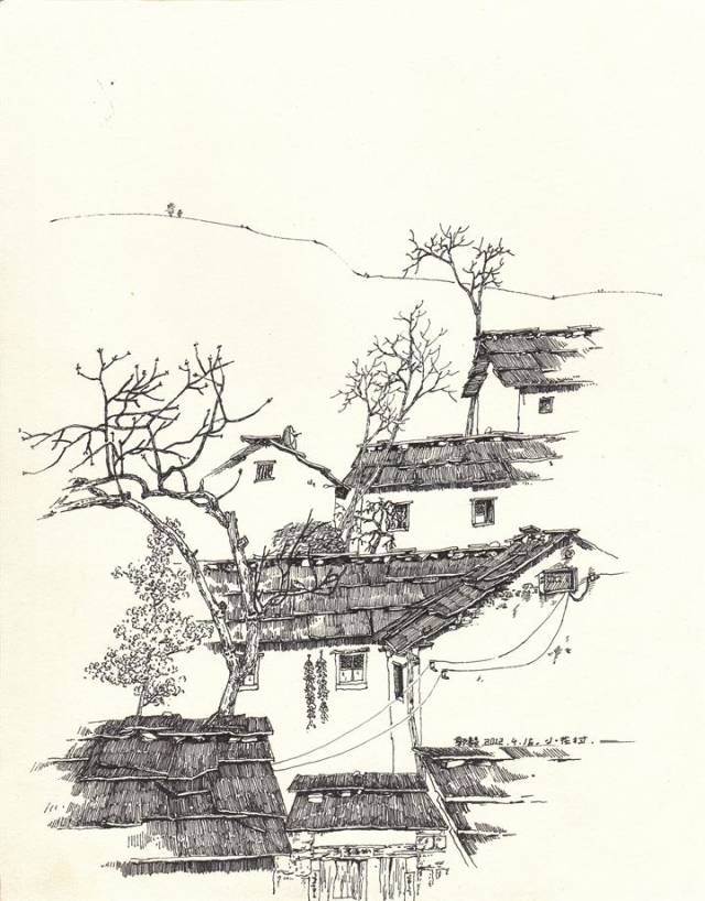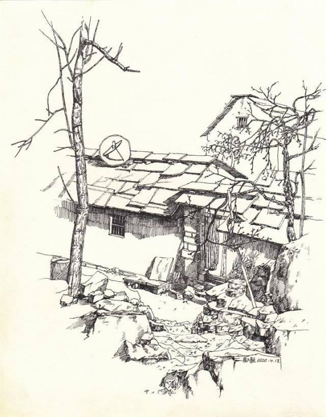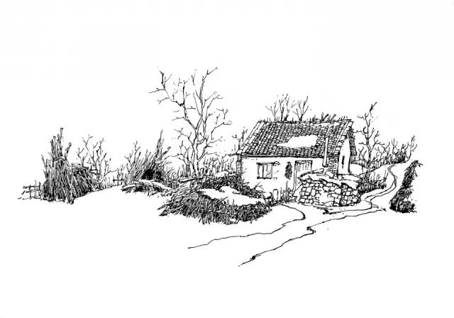第三步、从景物中最吸引你的地方开始画起,从这一步开始你应该快速的掌握大的比例透视,把大的形态用几何形体概括出来。