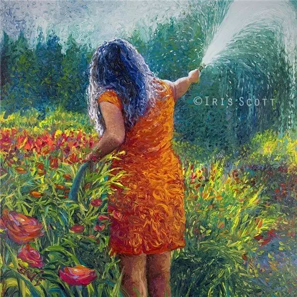 外国艺术家IrisScott,用手指涂在画布上的"印象派"