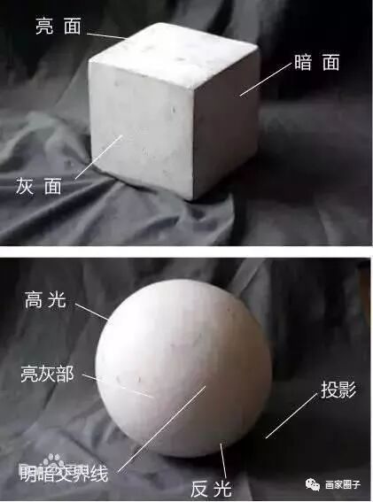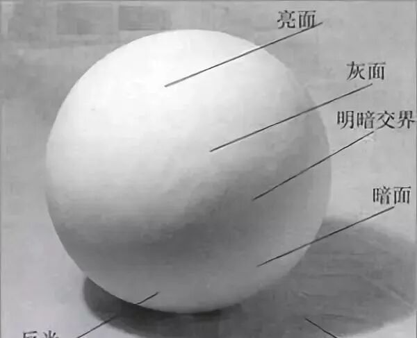 高光:受光物体最亮的点,表现的是物体直接反射光源的部分,多见于质感比较光滑的物体。亮灰部:高光与明暗交界线之间的区域。明暗交界线:区分物体亮部与暗部的区域,一般是物体的结构转折处。