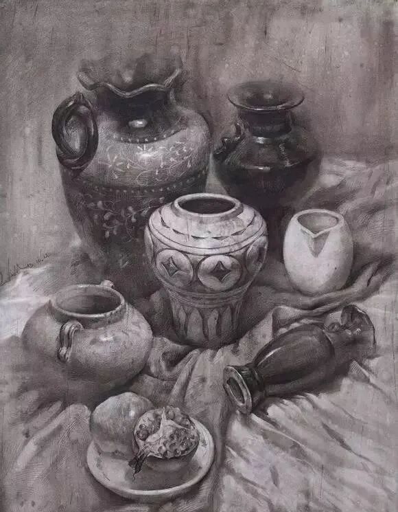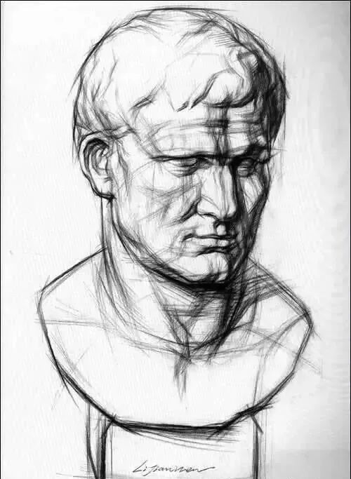学素描一般从石膏几何体开始,然后画静物、石膏像、人像,由简单到复杂,渐渐学会把复杂的形体归纳成几何形。