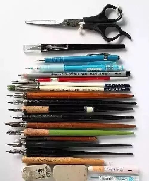 素描的工具种类很多,如石笔、炭笔、铁笔、粉笔、毛笔、铅笔和钢笔等;也有用钻子和金钢石作画的。工具的不同关系着素描的性质和构图,工具也能影响画家的情绪和技巧。
