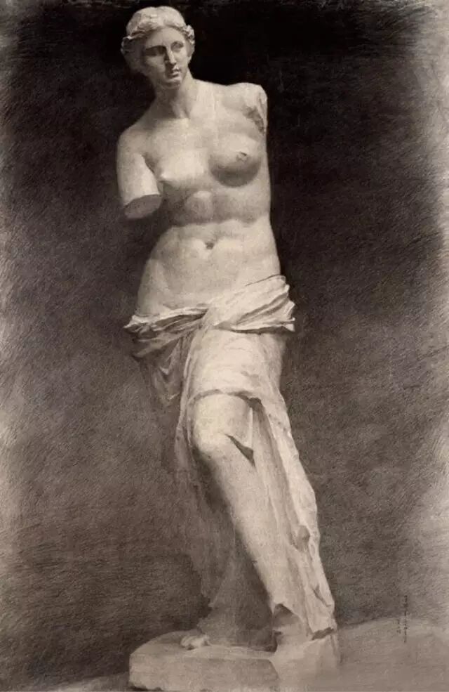 前二种一般重点放在表现对象的形体结构上,后者往往更强调丰富的黑白灰关系,表现出强烈的虚实感、空间感。但不管怎样,这些表现形式都必须建立在严谨、准确的结构关系上。找准结构关系,是完成好一幅作品的基础与前提。