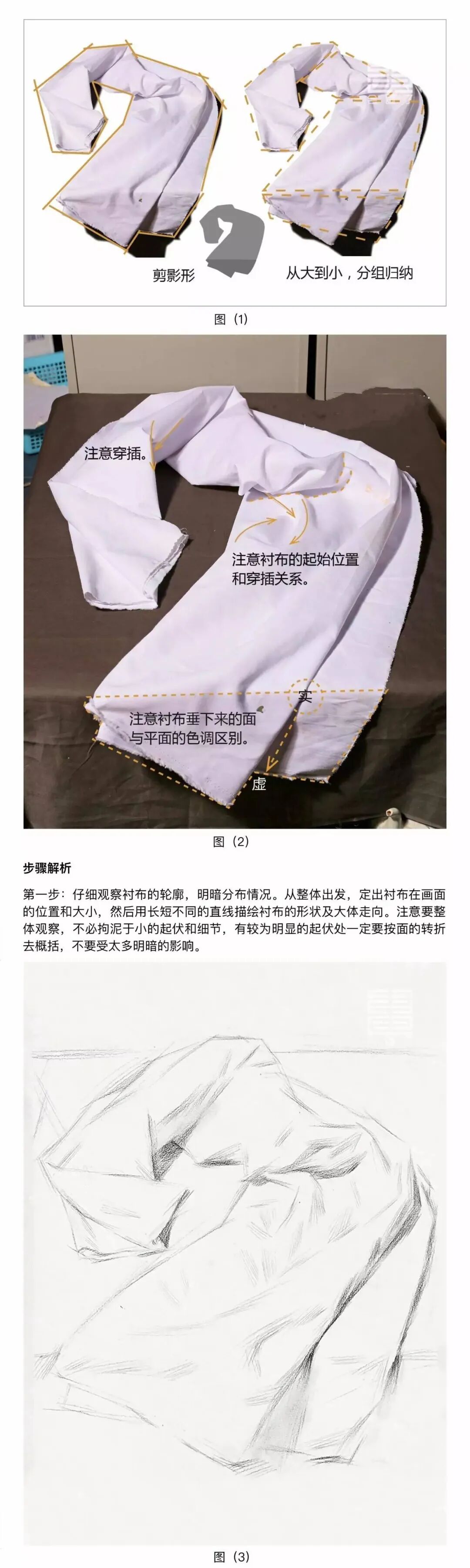 一般出现在内形布褶的主要转折处。能让布褶转折自然合理,丰富布褶的特征与变化。