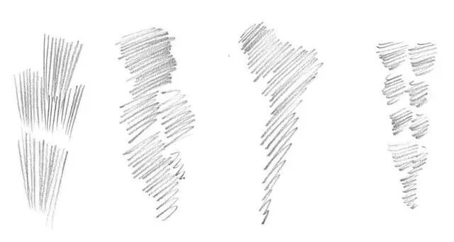 两条或三条不平行的直线交叉在一起,在绘画中可以得到不同的排线效果。
