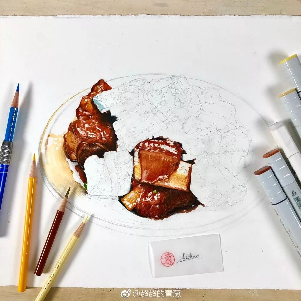之前给大家分享过一组彩铅红烧肉,但是没有过程