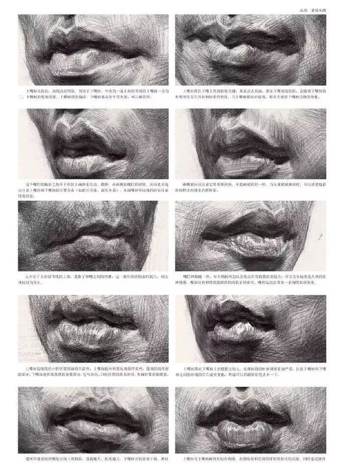 嘴巴主要注意这五个点:唇中线、上嘴唇的明暗交界线、反光面,下嘴唇的投影、还有反光。