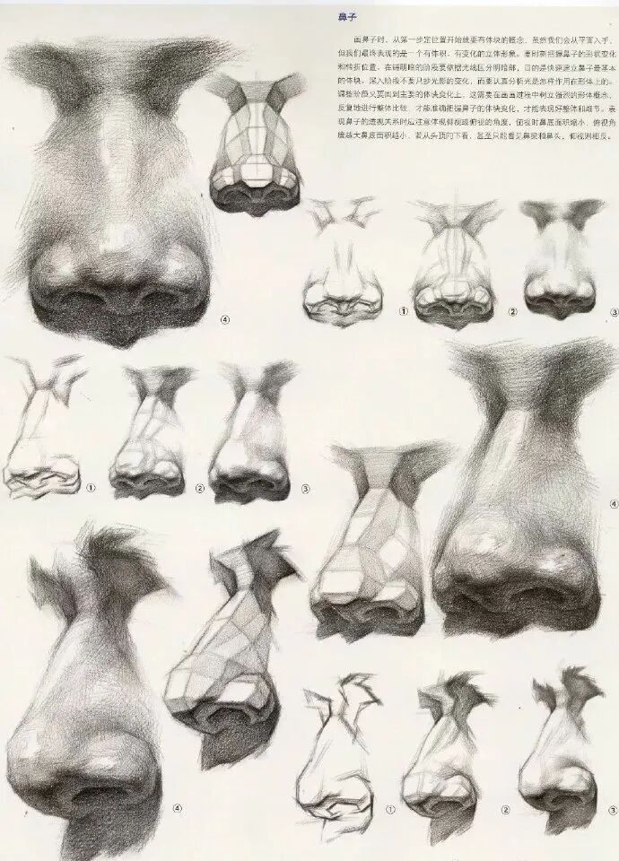 它由鼻梁、鼻根、鼻头、鼻翼、鼻孔、鼻唇沟构成